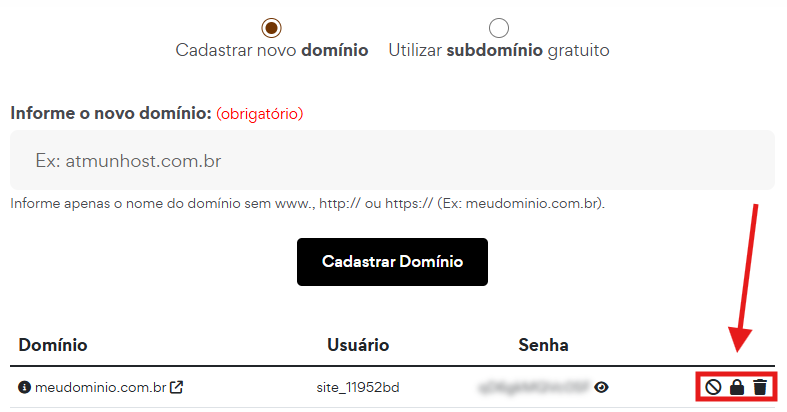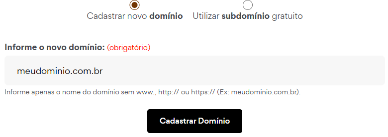 Utilizar subdomínio gratuito: use um de nossos subdomínios sem custo.