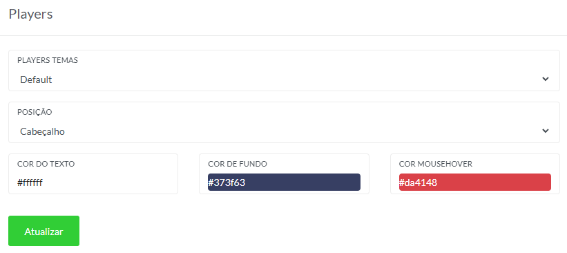 3 - Na tela de configuração do player, em Players Temas, escolha entre as duas opções principais:
