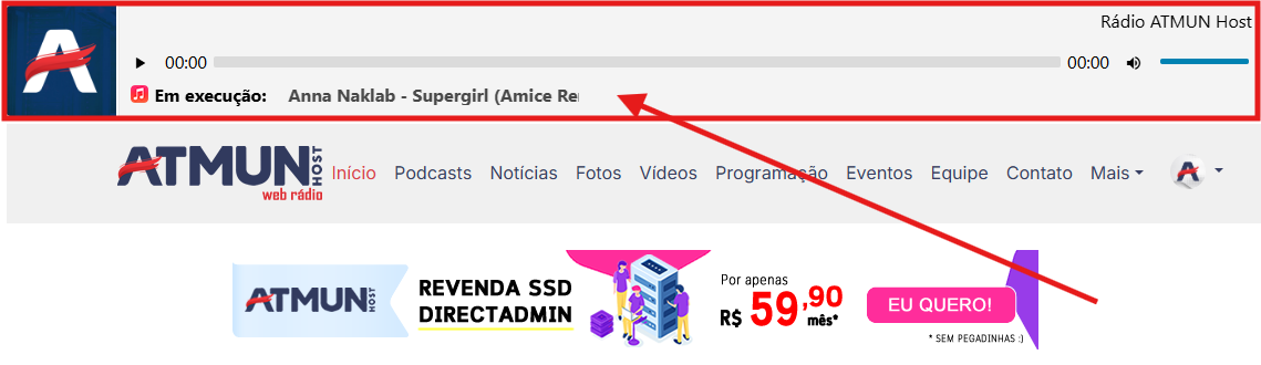 8 - Abra a página inicial do site e teste o player para verificar se a nova cor foi aplicada ou se o player personalizado está funcionando corretamente.