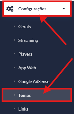 2 - No menu lateral, localize e clique em Configurações e, em seguida, clique em Tema;