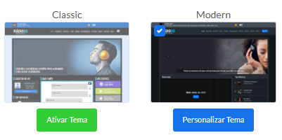 3 - Na tela de Temas, você verá duas opções para aplicar ao seu site: Classic e Modern.