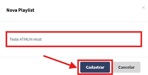 4 - Informe o nome da nova playlist e clique no botão Cadastrar;