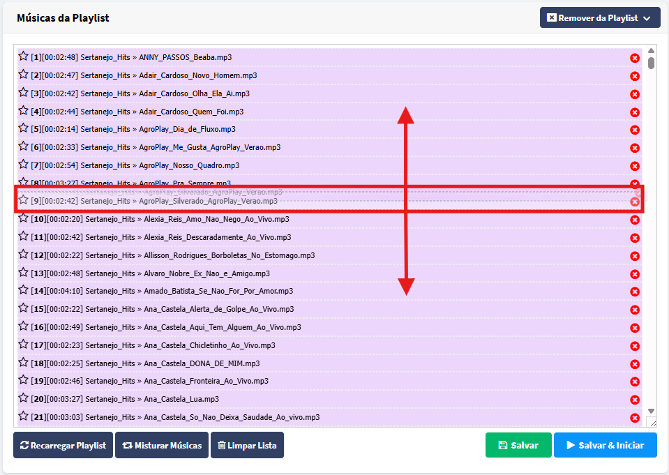 8 - Para mudar a posição de uma música, na seção Músicas da Playlist, clique e arraste a faixa para a posição desejada;
