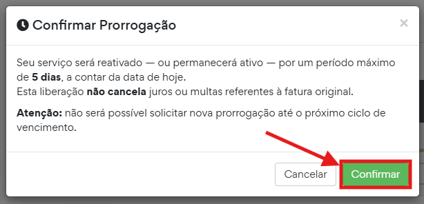 Ao clicar nesse botão, você poderá estender o vencimento do serviço por até 5 dias.
