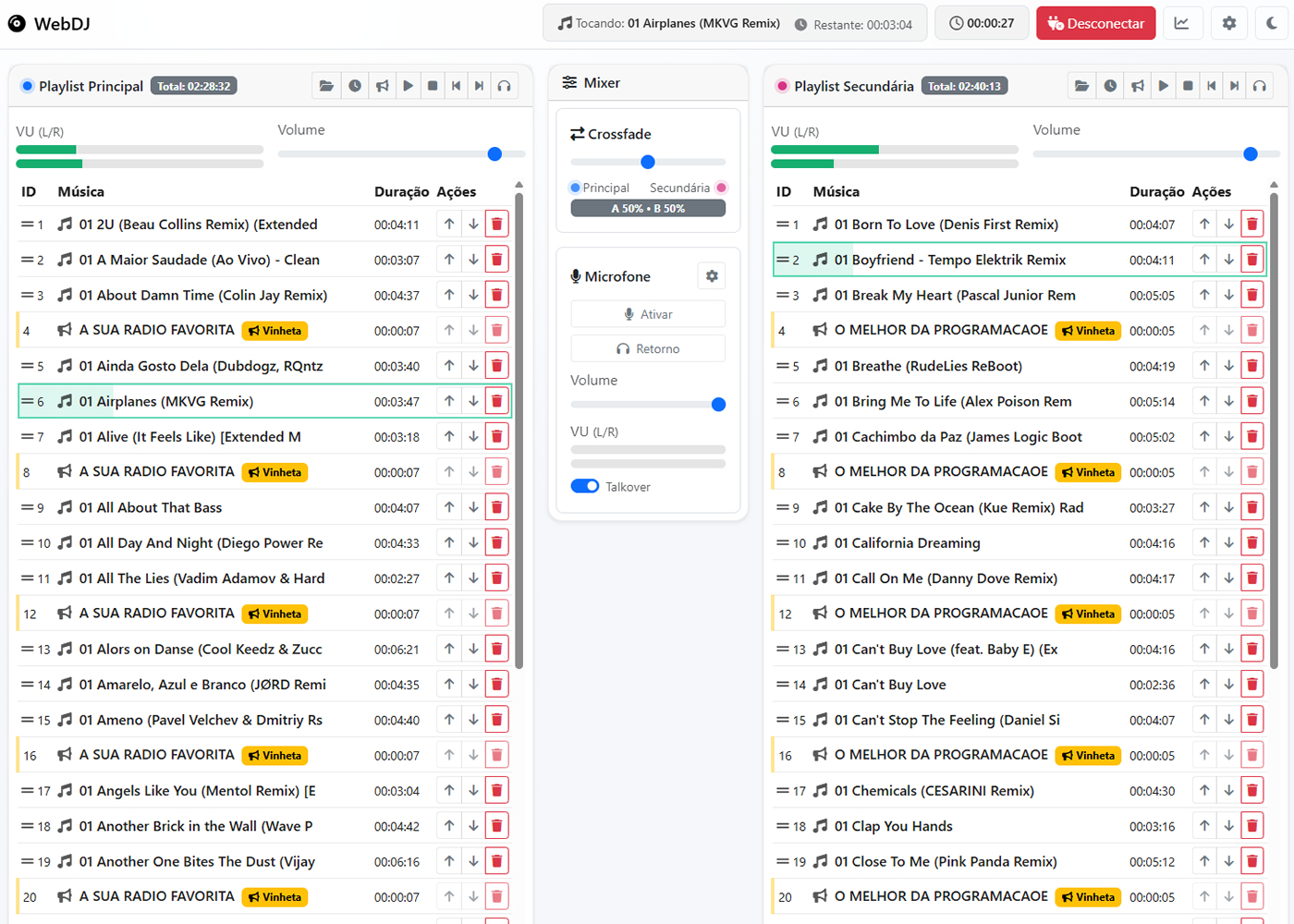 Faça transmissões ao vivo ou programadas através do nosso Auto DJ